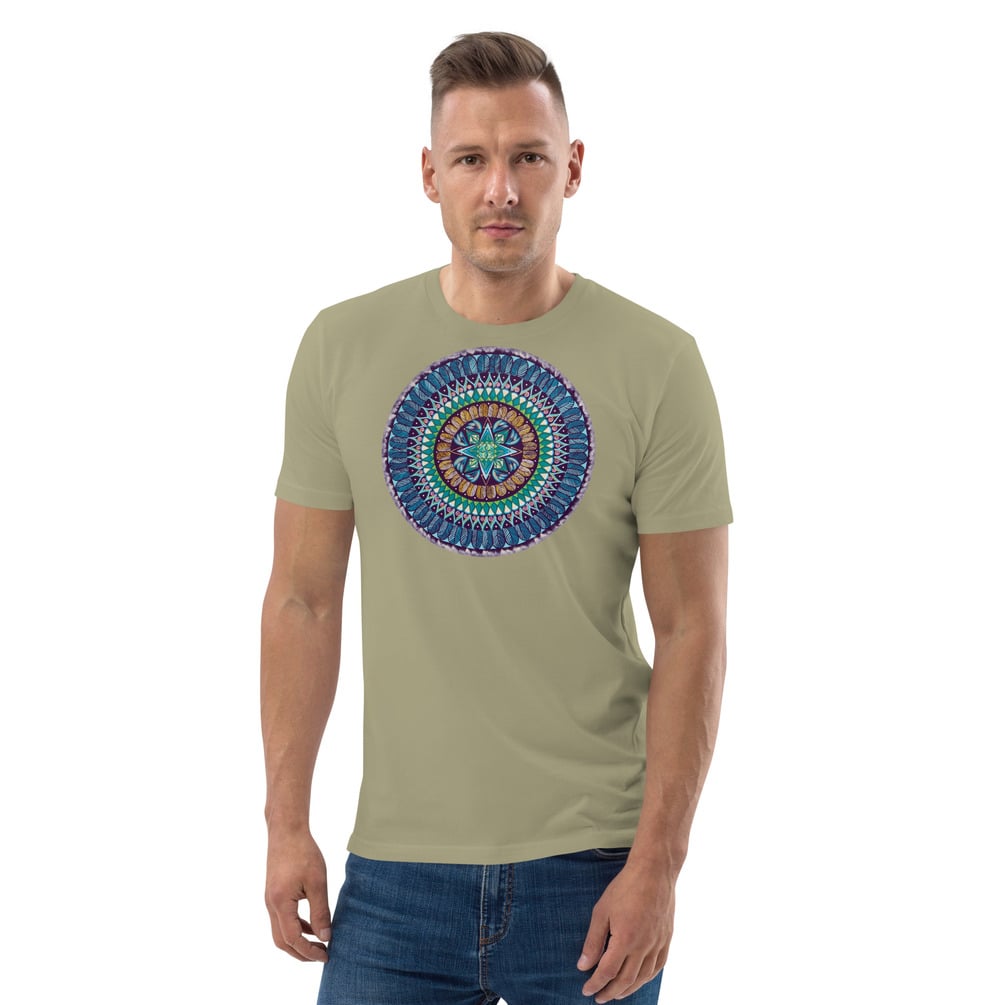 Organic Cotton T-Shirt ~ "Blue Feather Grail Crest" Original Mandala Design